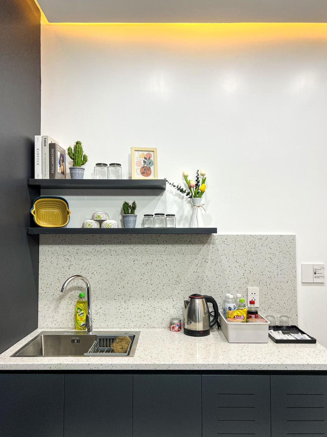 Standard Apartment. The air-conditioned apartment features 1 bedroom and 1 bathroom with a bath and a shower. In the kitchen, guests will find a stovetop, a refrigerator, kitchenware and an electric kettle. The unit has soundproof walls, city views, a patio and chocolate is featured for guests. The unit offers 1 bed. ;