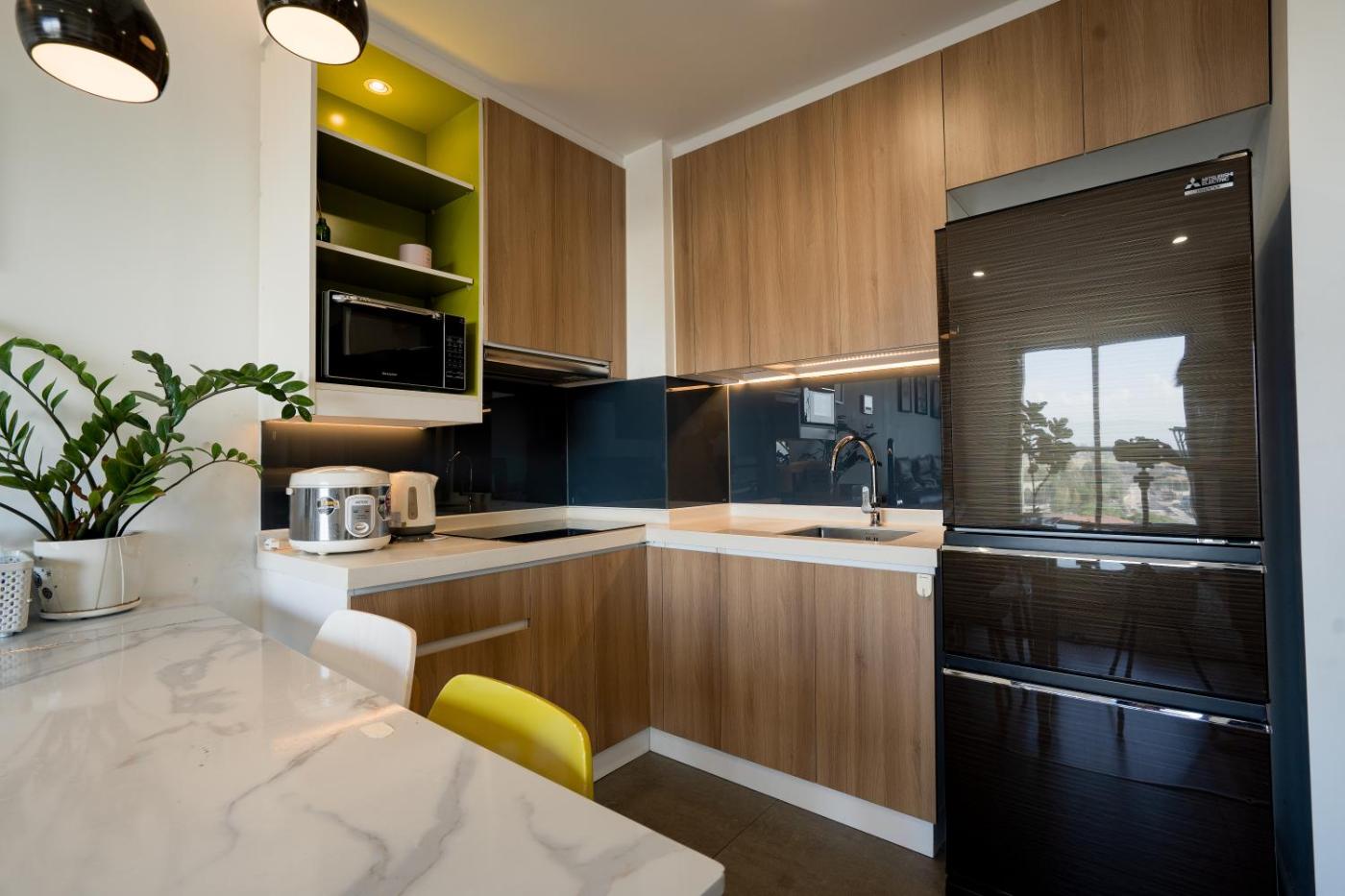 One-Bedroom Apartment. The pool with a view is the standout feature of this apartment. In the well-equipped kitchen, guests will find a stovetop, a refrigerator, kitchenware and a microwave. This air-conditioned apartment comes with a dining area, a flat-screen TV with cable channels a washing machine and a balcony. The unit has 1 bed.